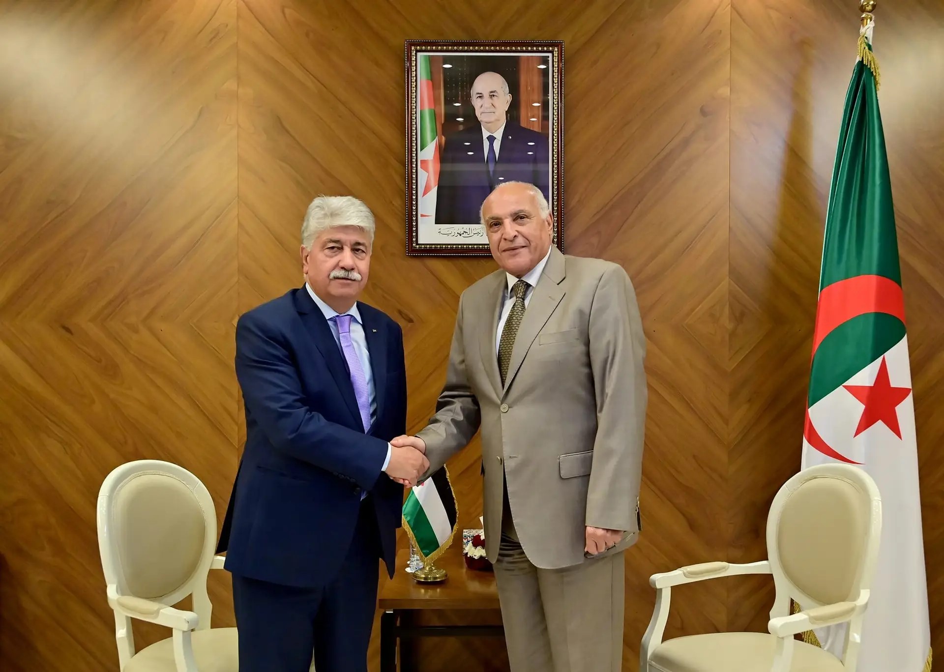 Le ministre Attaf reçoit le ministre palestinien de la Solidarité et du Développement social.