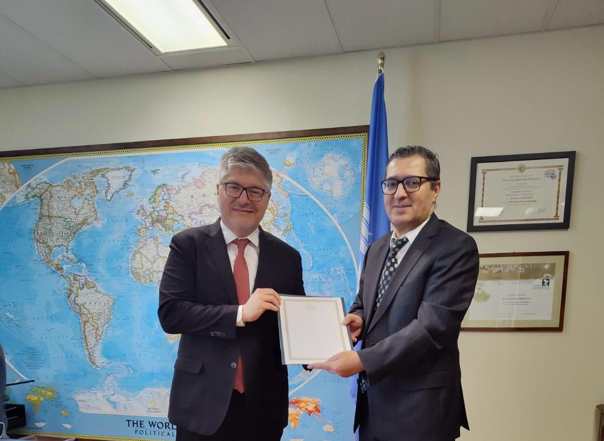 Monsieur Noureddine SIDI ABED Ambassadeur d'Algérie au Canada a remis, le jeudi 27 mars 2024 à Monsieur Juan Carlos Salazar, Secrétaire Général de lOrganisation de l'aviation Civile Internationale (OACI), les lettres de cabinet l'accréditant en qualité de representant de l'Algérie auprès de cette organisation.