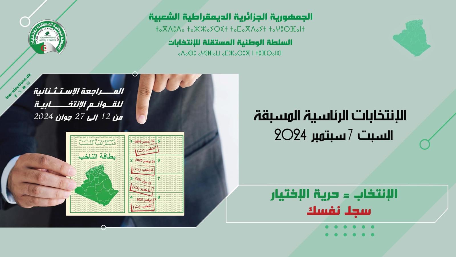 En application du décret présidentiel N˚ 01-96 du 11 mars 2021, portant convocation du corps électoral pour l’élection des membres de l’Assemblée Populaire Nationale, prévue le samedi 12 juin 2021, il sera procédé à la révision exceptionnelle des listes électorales, du 16 au 23 mars 2021...