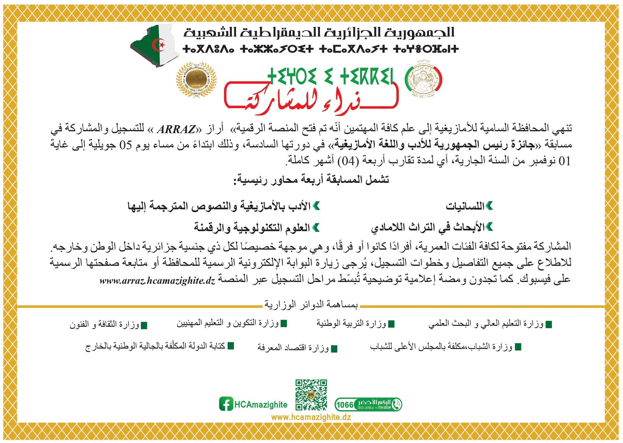 Vous trouvez, ci-joint, en version arabe, française et anglaise, une fiche sur les conditions de participation à ce concours et les formulaires de candidature : en arabe, en français et en anglais