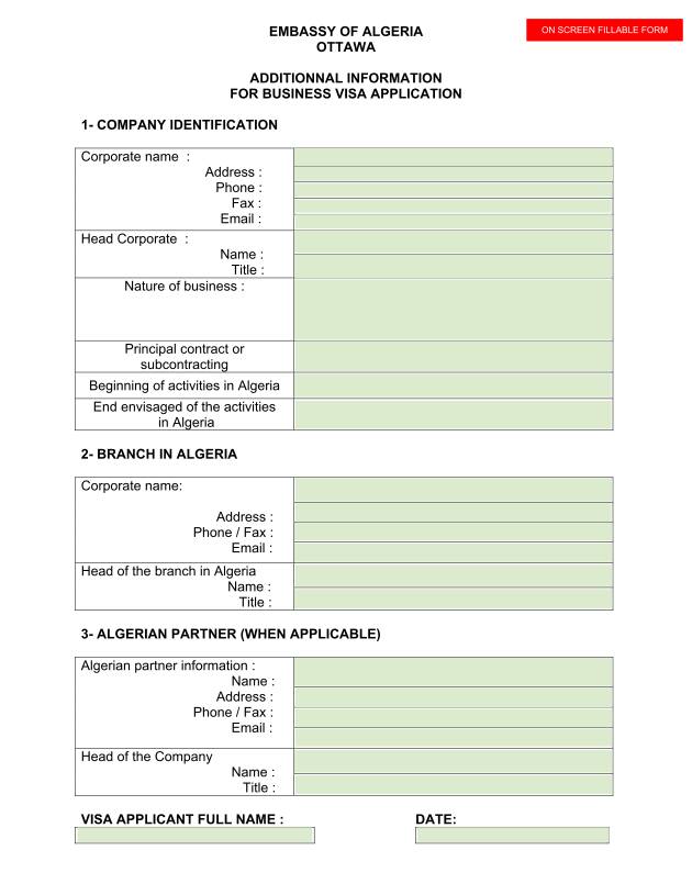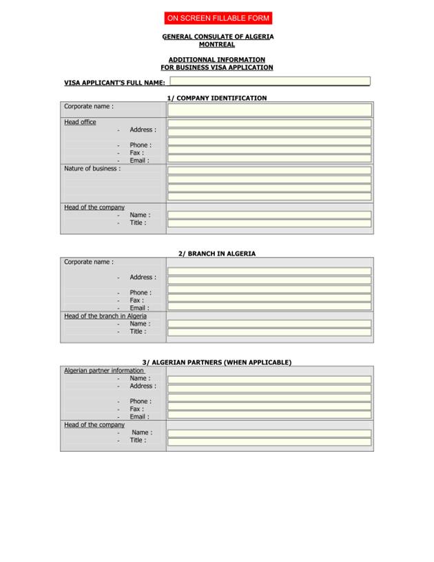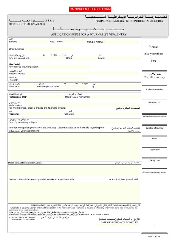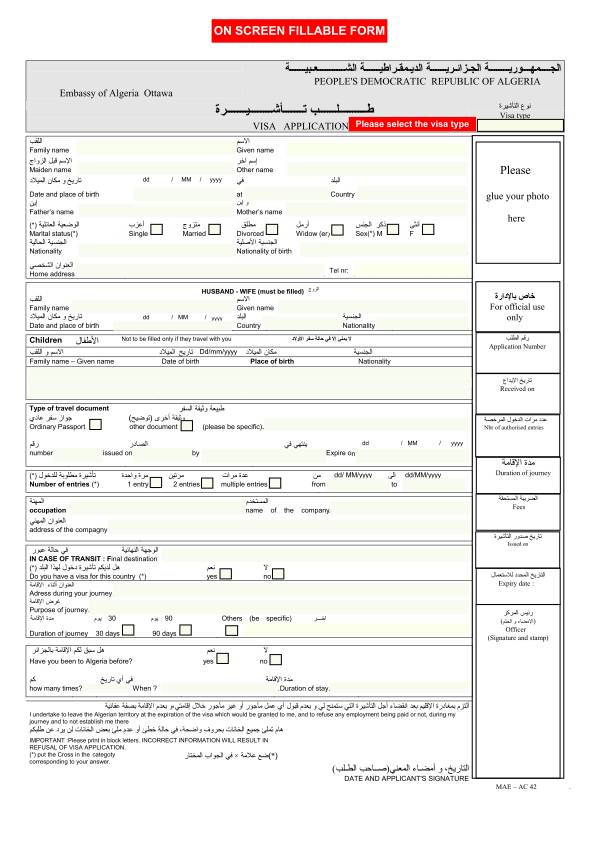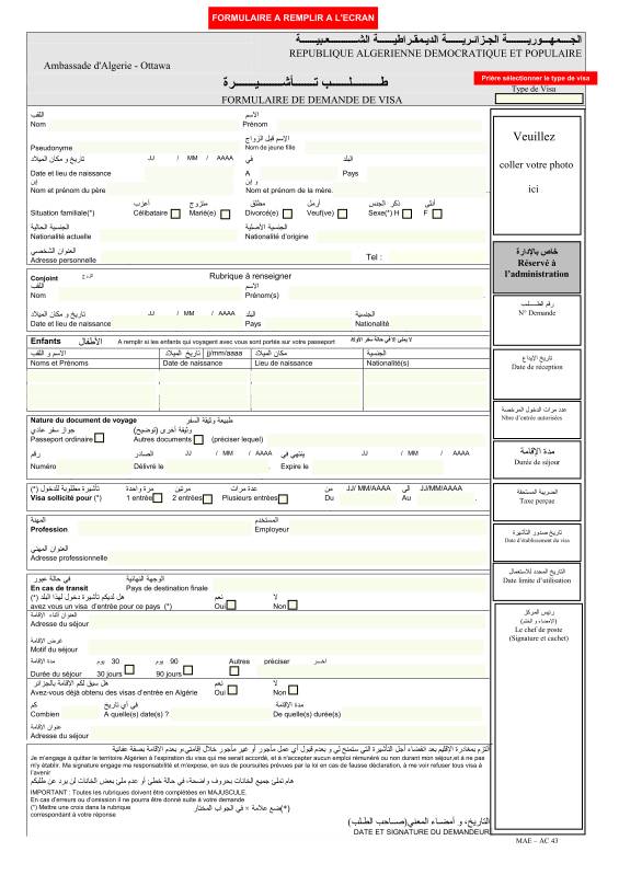- Visa D'entrée en ALGÉRIE (formulaires en français)